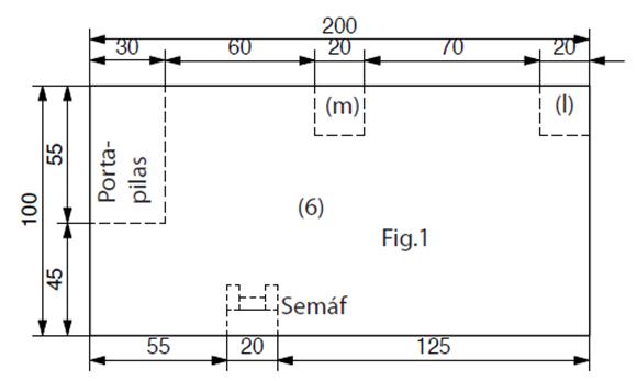 2. Marcar en la placa base (6) los sitios para las piezas individuales (l + m), así como para el semáforo y el portapilas (Fig. 1).