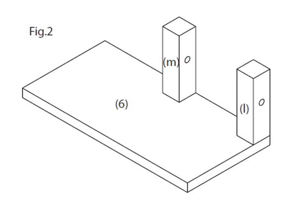 3. Encolar las piezas (l) y (m) en la placa base (6) como se ilustra, en los sitios para ello previstos. |