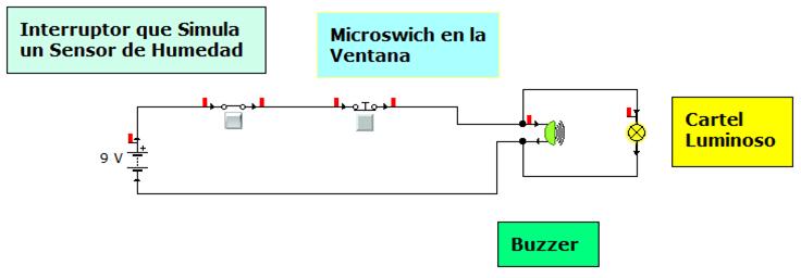 Cuando la ventana se abra y llueva, la alarma para avisar al productor sonara, y se encenderá el cartel luminoso indicando el hecho.