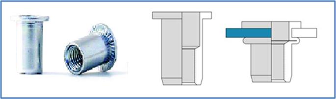 Es un elemento de Fijación Mecánico Ciego que garantiza una rosca fuerte, resistente y fiable. Es un elemento de fijación mecánico que proporciona un punto de roscado en aquellas aplicaciones que solo tienen acceso por un lado. |